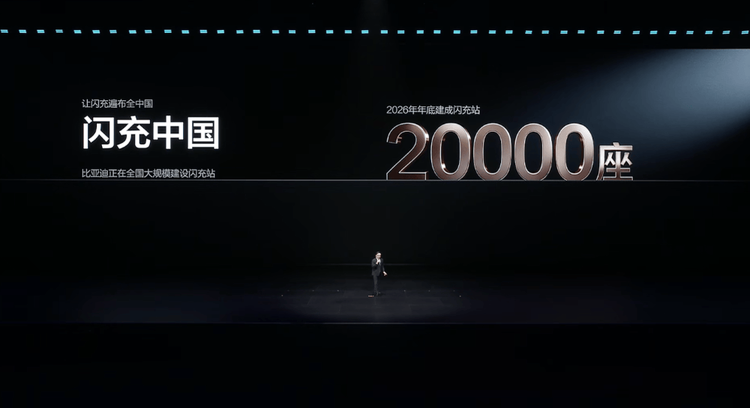 为了让更多人享受到闪充,比亚迪发布了一项名为“闪充中国”的战略,将会在全国大规模建设闪充站,到今年底将会建成2万个闪充站。2026年底,比亚迪还将会开始全球化闪充站的建设。