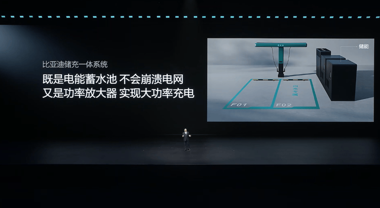 为了满足兆瓦闪充,又不对电网造成负担,比亚迪推出了储充一体系统,通过储电站的配合,可以让闪充顺利实现。