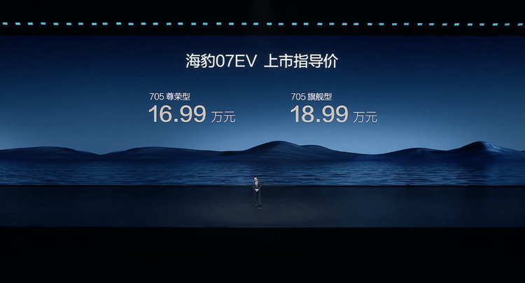 海豹07 EV的CLTC续航里程为705公里,搭载天神之眼5.0,售价区间为16.99万至18.99万元。