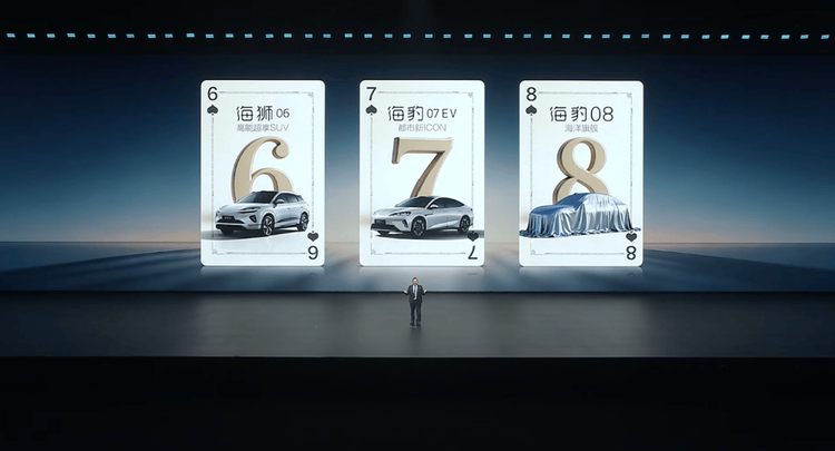 海洋网总经理张卓介绍了海狮06、海豹07 EV,还预告了海豹08车型。