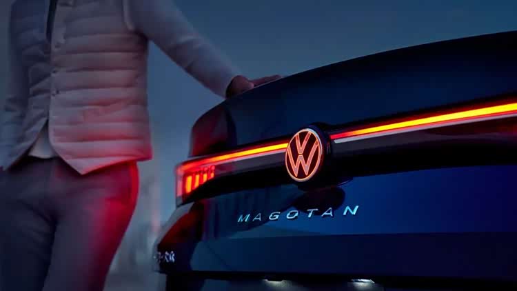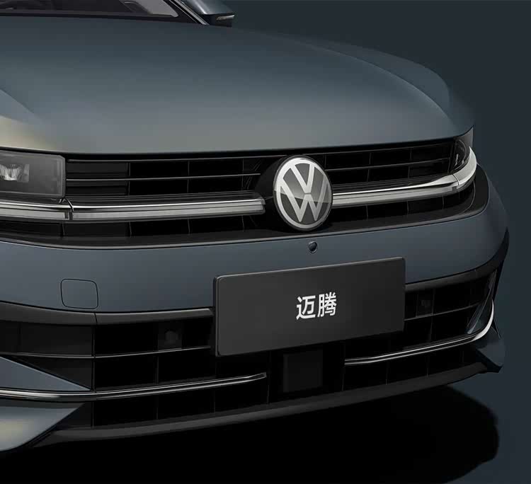 从正面看,新车保留了迈腾家族标志性的横向镀铬格栅,但将大灯组设计得更为纤细锐利。
