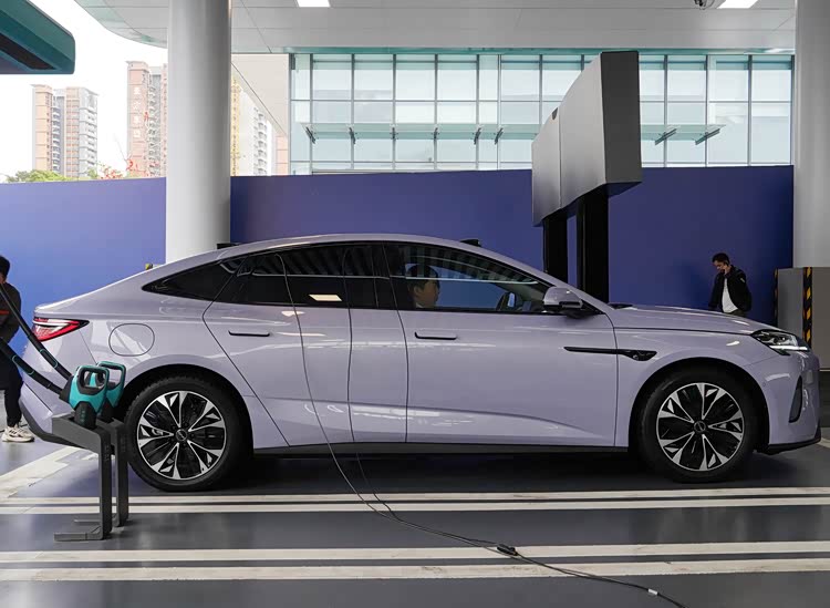 侧面造型方面,车顶采用了溜背式造型,搭配鲨鱼鳍带来了浓浓的轿跑风格,腰线采用了分段式设计,点缀出了车身侧面的层次感;门把手依然是弹出式造型,能够起到降低风阻的作用;轮眉和侧裙部分设计有隆起的筋线,让视觉效果不是那么的单调;轮毂采用了低风阻五幅式花瓣造型,风格还算大气。