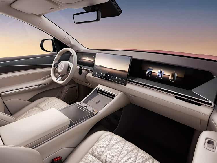 作为旗舰,车内用料达到新高度,新车大面积采用Nappa真皮、麂皮绒顶棚以及天然木纹或金属质感饰板,营造符合D级车身份的豪华氛围。虽然没有公布具体屏幕规格,但可以预见,可旋转的大尺寸中控屏依旧会是标配,车机系统的UI设计和交互逻辑有望针对旗舰身份进行专属优化。