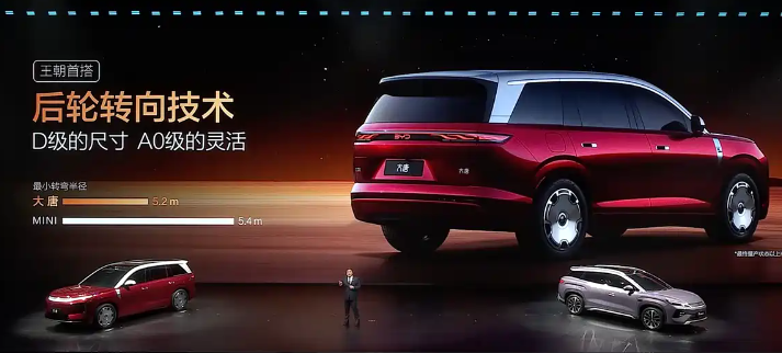 与此同时,大唐还标配了后轮转向系统,最大转角可达±5°。这一配置对于如此尺寸的SUV来说堪称“神器”,它能使大唐的转弯直径缩小至11米以内,相当于一辆A级轿车的灵活性,在城市窄路掉头、过弯以及泊车时显得异常从容,彻底解决了大车“笨重难开”的痛点。前双叉臂、后五连杆的悬架结构,也从物理层面保证了车辆拥有上佳的操控潜力 。