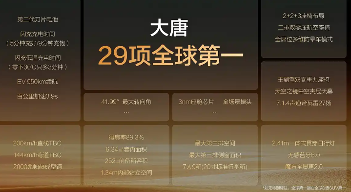 3月5日的比亚迪闪充技术发布会,成为2026年开年以来关注度最高的技术盛宴。值得一提的是,二代刀片电池和兆瓦闪充2.0技术并不是PPT,而是马上就能量产上车,因此比亚迪在发布会上一口气发布了11款新车,其中就包括了王朝网首款D级SUV——比亚迪大唐。
