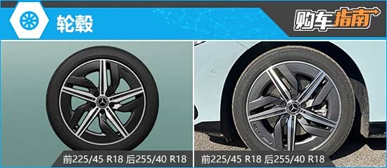 根据现有信息来看,新车全系标配RQJ AMG 五辐轻合金轮毂,高配车型可免费选装RQK AMG 五辐轻合金轮毂,两款轮毂造型均比较时尚。此外,全系车型均匹配前225/45 R18、后255/40 R18规格轮胎。