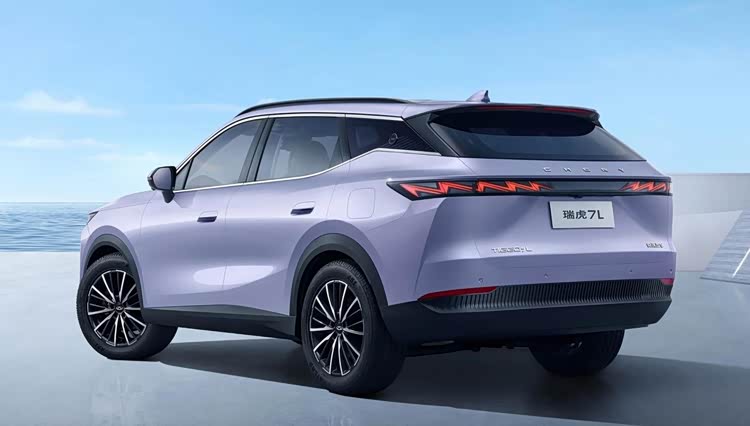 车身侧面通过块面设计营造出不错的层次感,饱满的腰线让整车多了几分力量感。在瑞虎7L的车身上,依旧可以看到折线式车窗设计,辅以熏黑处理的D柱,带来悬浮式车顶效果。此外,瑞虎7L还配备半隐藏式门把手、车顶行李架、全景天窗、双色轮毂。