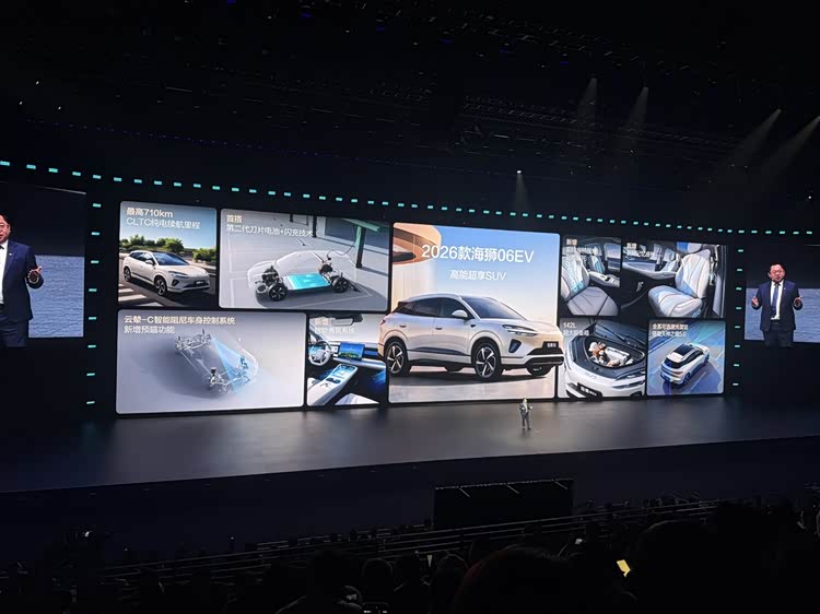 2026款海狮06EV共计推出4款车型,售价15.99-17.99万元。核心升级为搭载第二代刀片电池,提升续航和充电性能。作为海洋网中型SUV,延续现款设计,在电池技术上实现跨越。