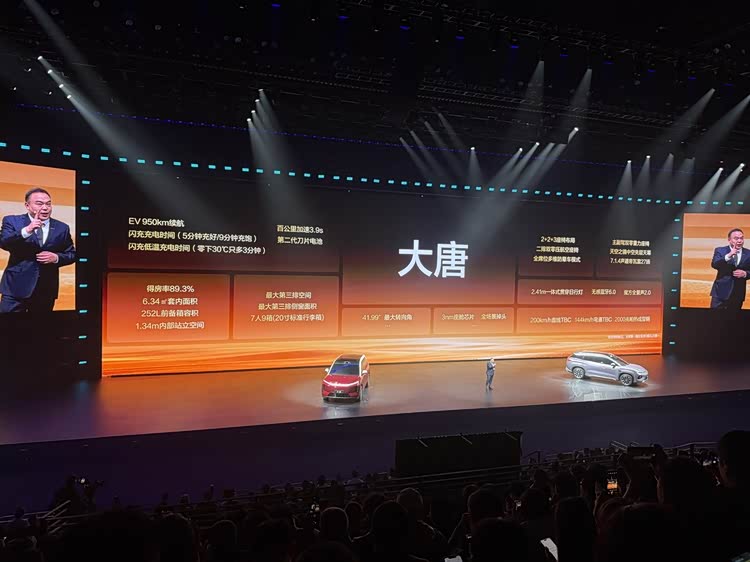 大唐作为王朝网全新旗舰SUV,以“大格局、东方气韵”为设计理念。新车搭载第二代刀片电池,纯电续航高达950公里,并支持闪充技术,补能效率接近燃油车。提供宽敞的七座空间。二排配备带一体式腿托的独立航空座椅,三排座椅支持电动角度调节和加热功能,全车采用高级菱格缝线工艺。智能化配置上,大唐搭载天神之眼B高阶辅助驾驶系统,支持城区和高速NOA。云辇-A智能底盘与双腔空气悬架的搭配,兼顾舒适性与操控性。作为比亚迪冲击高端SUV市场的力作,大唐将东方美学与顶尖电动技术深度融合,满足家庭用户对豪华、空间、续航的全方位需求。