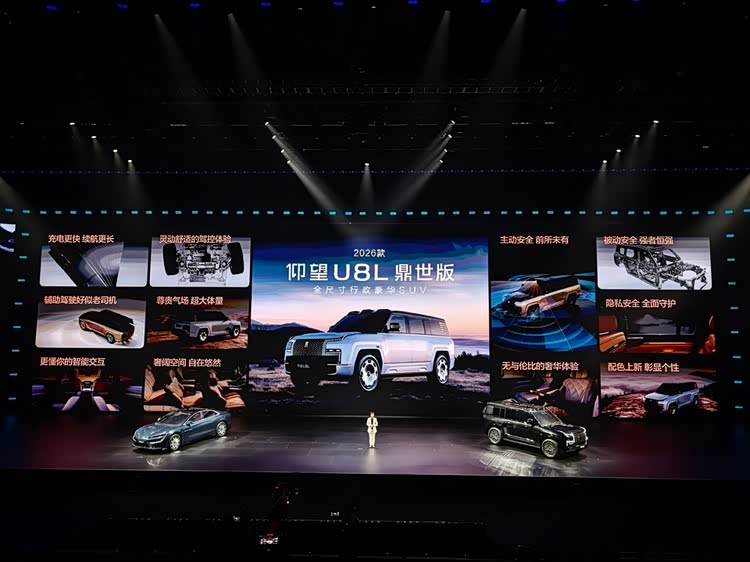 仰望U8L鼎世版 2026款同样提升了续航、搭载闪充技术,并在整车安全上再次升级。新车配备了全新的全场景隐私安全功能,不管是出行行程,还是个人数据,隐私保护的安全锁进一步加固,实现用车数据安全、隐私无忧。同时,仰望首创的高速爆胎稳行能力进一步扩展,通过与天神之眼系统相融合,带来了NOA爆胎稳行稳停功能,为辅助驾驶安全打造更强防线。另外,应急浮水功能从手动开启升级到自动开启,为生命安全争取最宝贵的时间。这三项安全升级,老客户也将通过OTA升级实现。