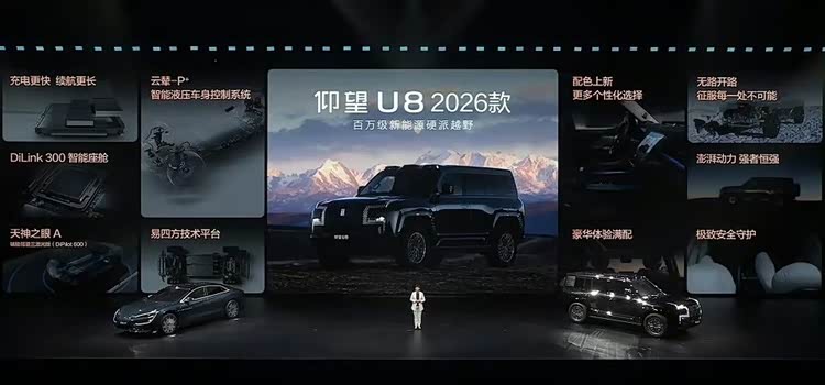 闪充技术为仰望U8 2026款带来续航与补能的双重革命,综合续航提升20.5%,达到1205km,充电倍率提升3倍,达到9C,大幅缩短补能时间,让极致探索更加从容无忧。此外,新车集成最新一代智能生态,搭载全球领先的3nm 5G车机芯片和天神之眼5.0系统,标配全新智能驾驶辅助指示灯,打造更安全、更智能的用车体验。