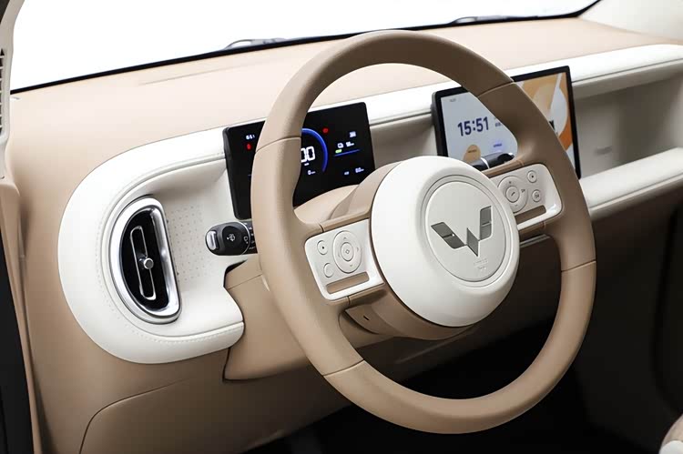除了空间更优外,第五代宏光MINIEV的内饰设计也进入到高质感时代。在其座舱内,焦糖奶油内饰配色展现出温馨而高级的一面,配合大量圆润的线条与倒角设计,温馨感油然而生。