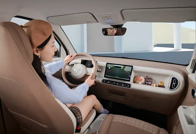 进入车内,第五代宏光MINIEV在座舱布局上进行了部分结构调整。车辆采用怀挡式换挡机构,并配合多功能方向盘使用,这种设计可以释放中央通道空间,使前排区域的使用更灵活。中控区域搭载10.1英寸高清中控屏幕,并采用全新的界面布局。系统内部集成空调控制、场景模式以及预约充电等常用功能。