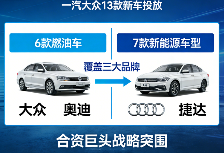 一汽大众的13款新车不是内卷式比拼,而是战略清晰的破局。它不陷价格战、不盲目激进转型,立足35年积淀,以“稳油、加电”策略,守住基本盘、补齐短板。
