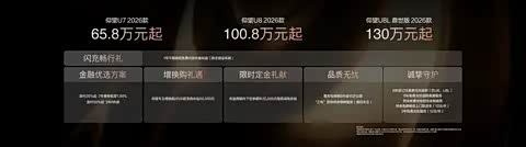为回馈用户支持,仰望汽车同步推出多重专属礼遇,涵盖闪充、增换购、定金、金融、质保等多个维度,从用车补能到售后保障全方位赋能高端出行:闪充畅行礼可享 1 年不限里程免费闪充补能权益(限非营运车辆);仰望车主增换购 2026 款至高可享 50000 元补贴;权益周期内下定即享额外 20000 元尾款减免;金融方面提供首付 20% 起 7 年费率低至 1.99%、首付 50% 起 3 年 0 利息等优选方案;质保服务上,整车包修期 6 年或 15 万公里,首任车主享 “三电” 系统终身保修,U8、U8L 专属 6 年或 12 次免费无忧保养,全系可享 6 年免费无忧道路救援、终身免费充电桩及安装服务,还有每年 12 次的终身免费维保上门取送车、3 年免费泊车服务,以全维度的贴心权益,打造品质无忧的用车体验。其中,2026 年 5 月 11 日(含)前支付 2026 款仰望车型定金的用户,自车辆交付之日起,可尊享一年内在比亚迪闪充充电桩免费充电的专属权益(限非营运车主)。