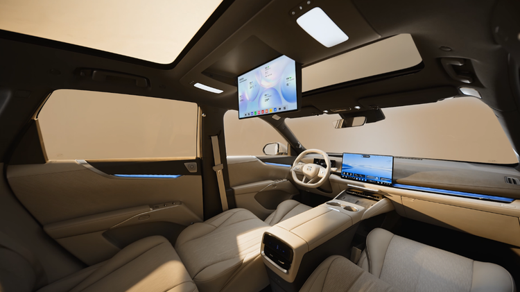 “全景环抱式”座舱以舒展格局营造呵护之感,流畅的线条与圆润的曲面交织,形成包容的空间氛围。座椅与门板饰以水波流转般的细腻纹理,搭配母婴级超柔亲肤材质,触感细腻顺滑,尽显对家人的妥帖守护。内饰甄选云上雅米与松烟紫黑双色,一净雅一深邃,清雅沉稳,让驾乘体验更上佳境。