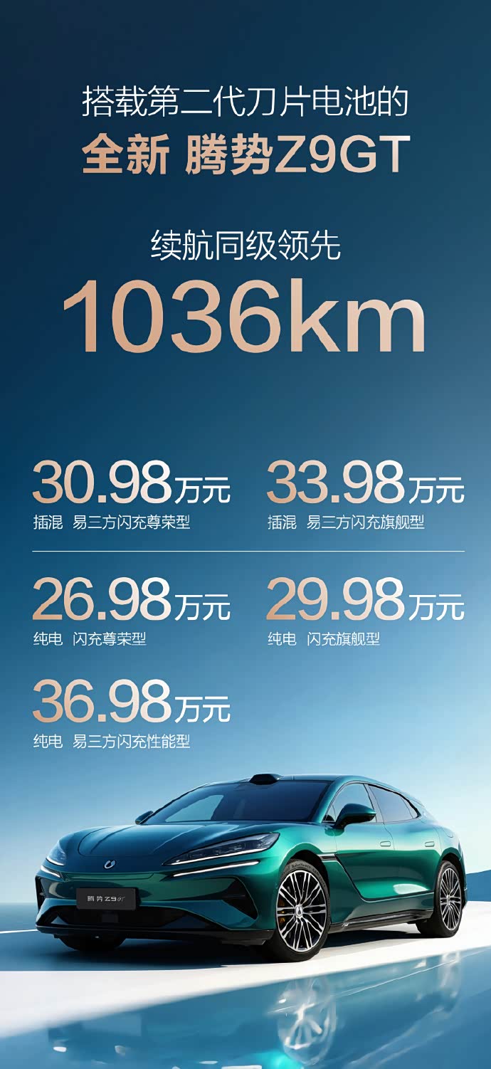 具体技术细节尚待公布,但比亚迪表示新电池可使全新 腾势Z9GT(参数|询价)续航达到1036公里(CLTC工况),以及搭载第二代刀片电池的比亚迪大唐最大续航可达950公里。闪充桩单桩功率高达1500kW,较传统快充桩提升超1000kW。
