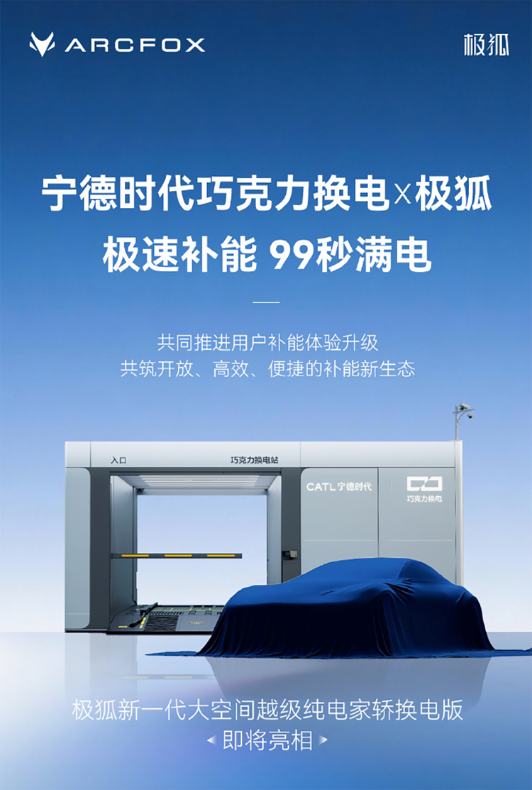 3月6日,北汽集团旗下极狐汽车确认宁德时代“巧克力换电”达成深度合作,两方将共同推进用户补能体验升级,构建开放、高效、便捷的新能源补能新生态。同时,极狐汽车将推出一款大空间纯电动轿车的换电版,该车为品牌布局换电业务的力作。