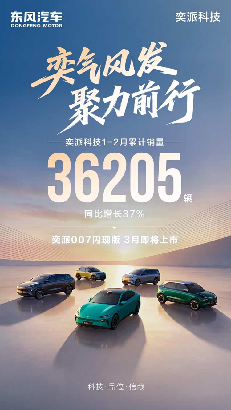 进入2026年,奕派科技以稳健增长跑赢大势。3月1日,奕派科技公布的最新数据显示,2月销量达14464辆,保持同比增长;1-2月累计销量36205辆,同比增长37%,迎来新春开门红,展现强劲发展动能。