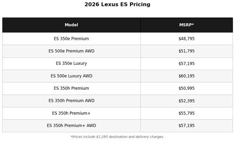 雷克萨斯终于将其最具代表性的车型之一全面电动化,而定价策略可能会令消费者感到意外。海外版全新2026款ES系列同时提供混合动力与纯电动版本,其中入门款纯电动车型成为全系售价最低的配置,起售价成功下探至5万美元以下。