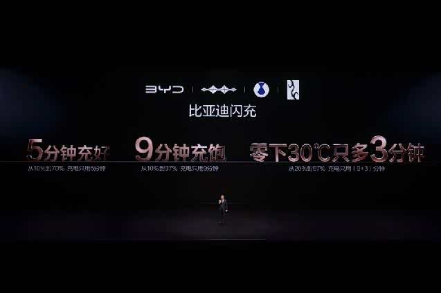 2026年3月5日,比亚迪在深圳大运中心体育馆召开“闪充中国 改变世界”发布会。正式发布:第二代刀片电池及闪充技术,创造全球量产最快充电速度新纪录,从10%到70%,只用5分钟就能充好;从10%到97%,只用9分钟就能充饱;零下30度,从20%到97%,只比常温多3分钟。一举攻克了电动化上半场“充电慢”和“低温充电难”的世界性难题,电动化上半场至此完美收官。同时,发布“闪充中国”战略,年底将在全国建设20000座闪充站,让用户充电更自由、更便捷,从此新能源汽车充电迈入闪充时代。