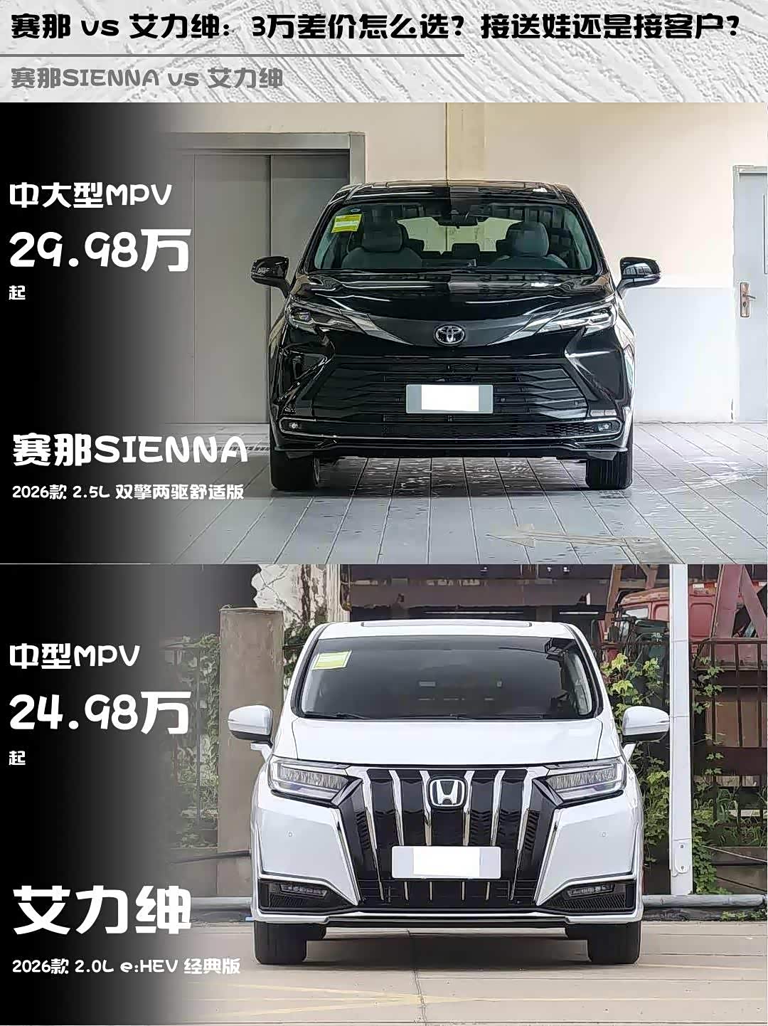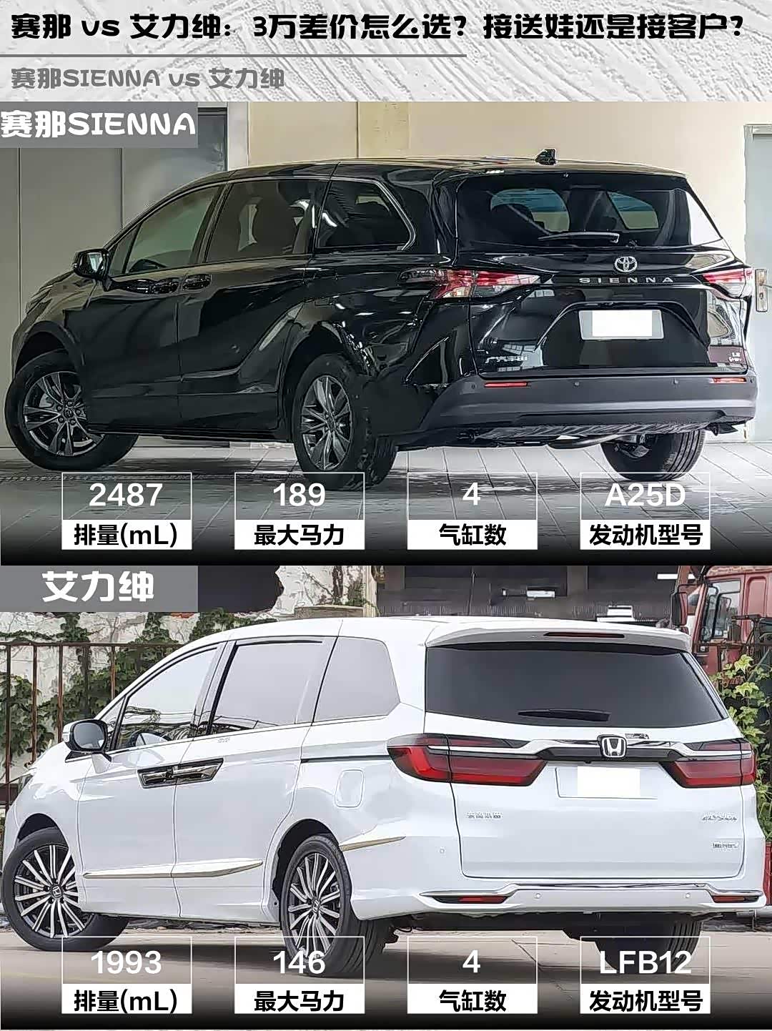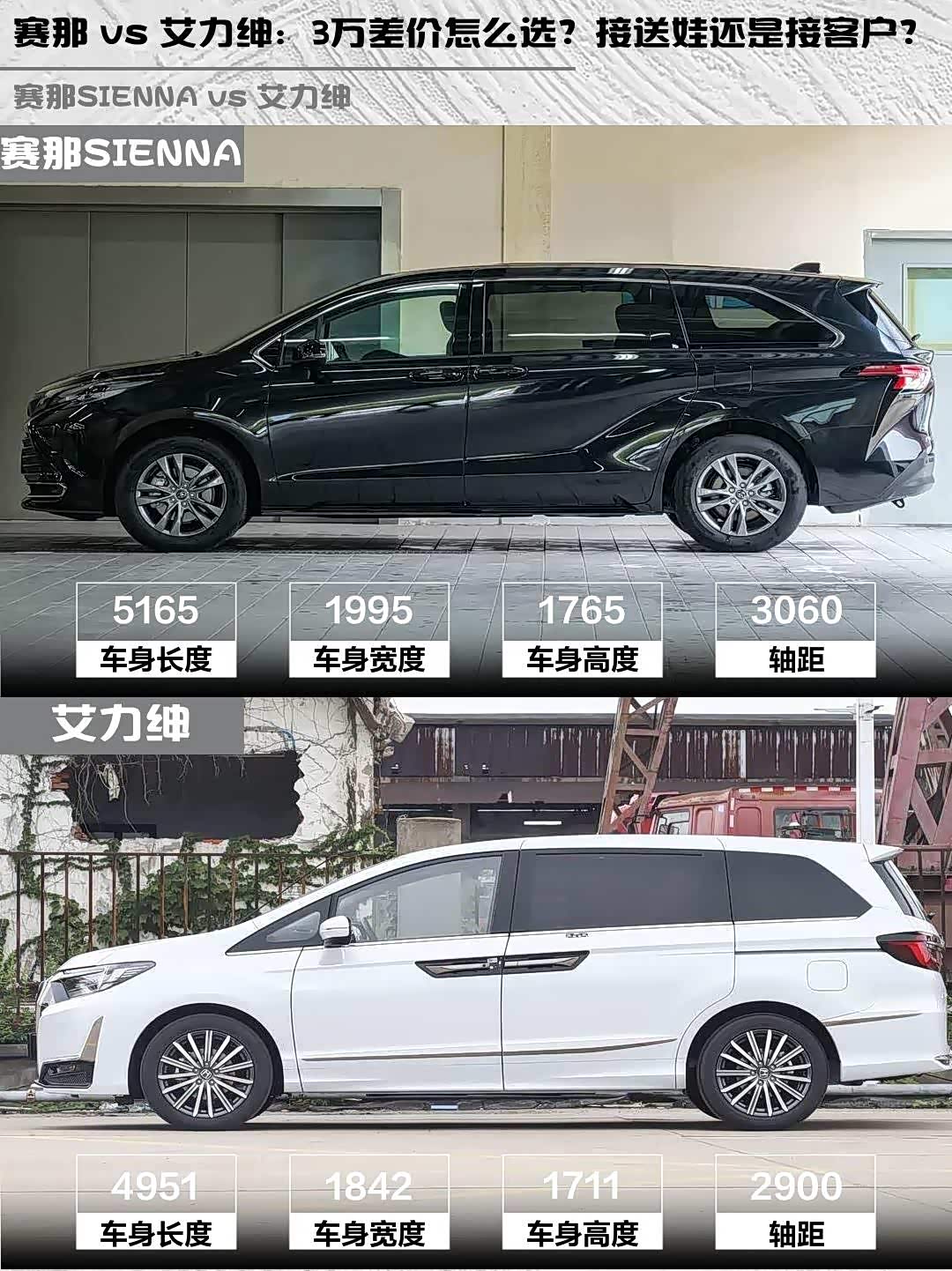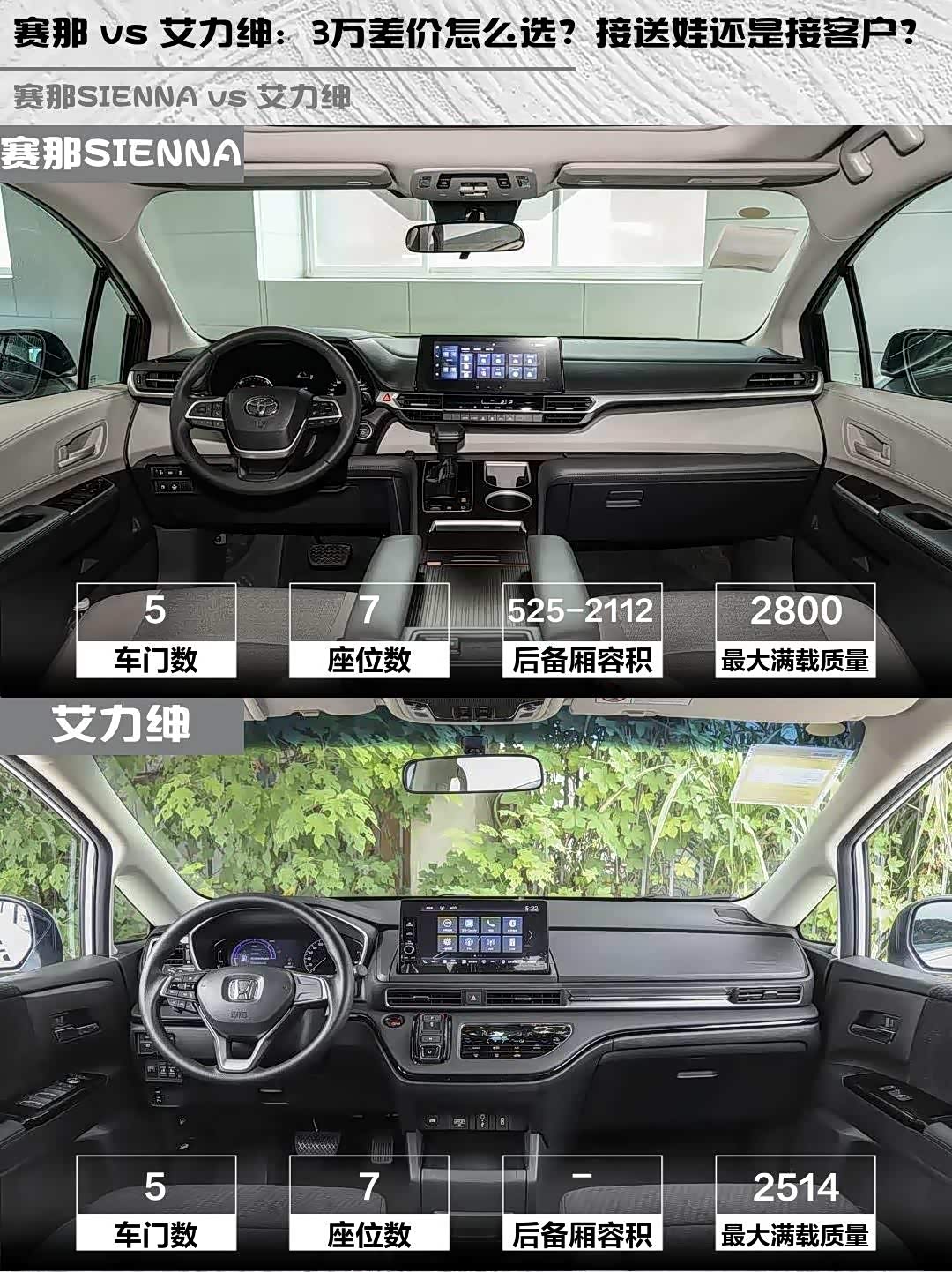 赛那 vs 艾力绅:3万差价怎么选?接送娃还是接客户?
