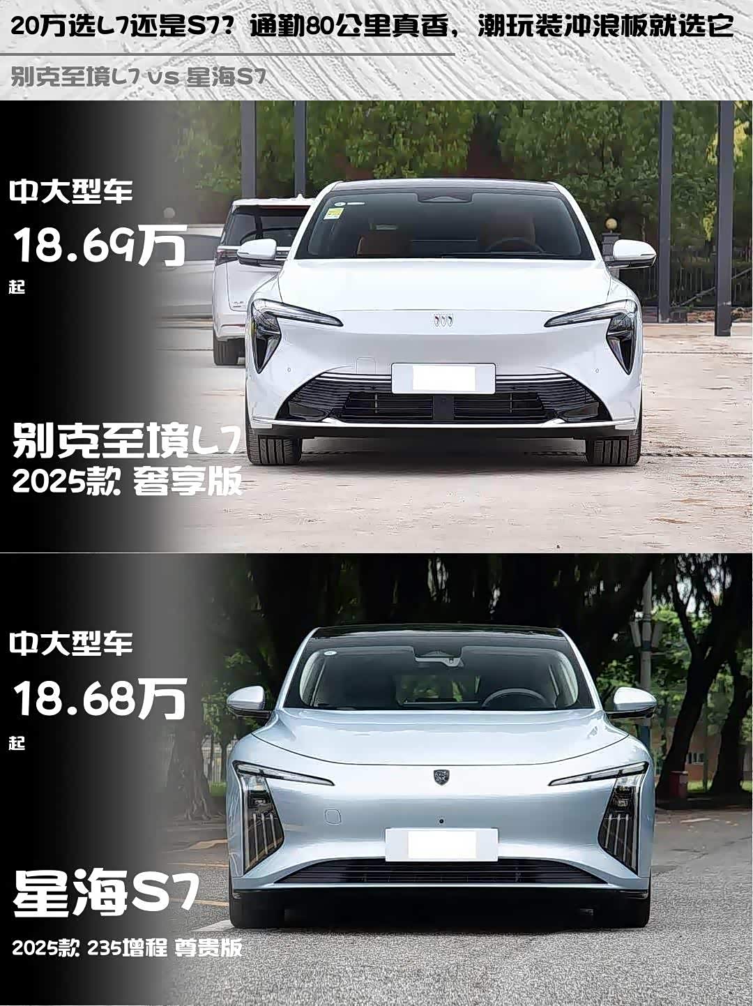 最近在20万级增程车市场纠结了好久,最终锁定了两款热门选手—— 别克至境L7(参数|询价) 2025款奢享版和星海S7 2025款235增程尊贵版。深度试驾后掏心窝子分享对比干货,给同样纠结的兄弟参考!💡