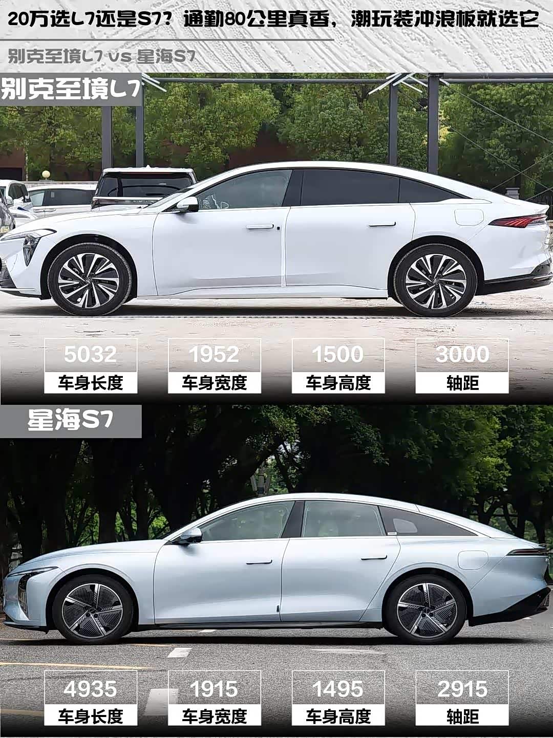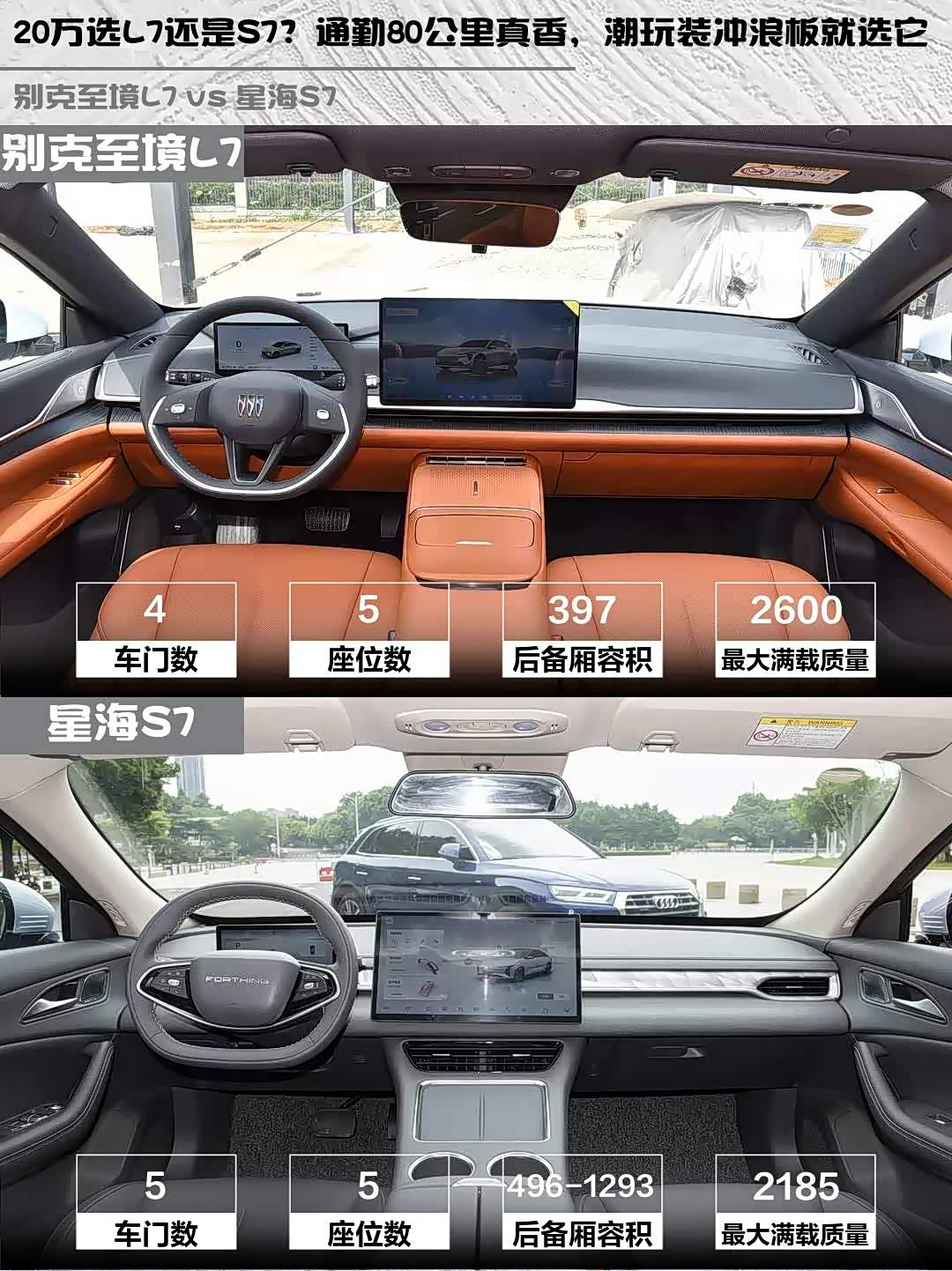 要豪华质感+续航无忧选别克至境L7,要年轻个性+用车成本低选星海S7。我最后选了L7,毕竟每天通勤80公里,大电池+快充0.3小时充80%真香!但同事买的S7掀背尾门装冲浪板超方便,看需求啦~