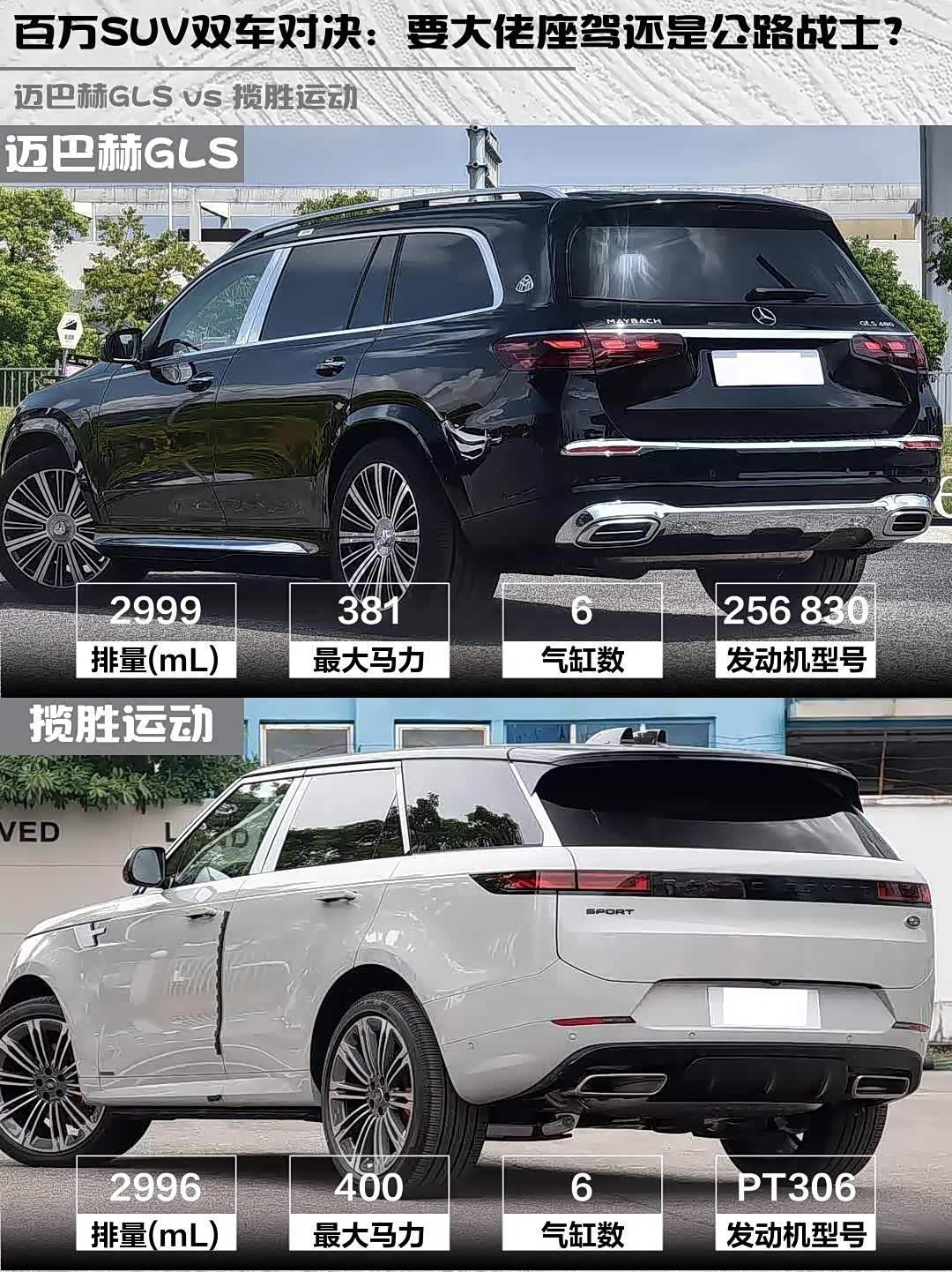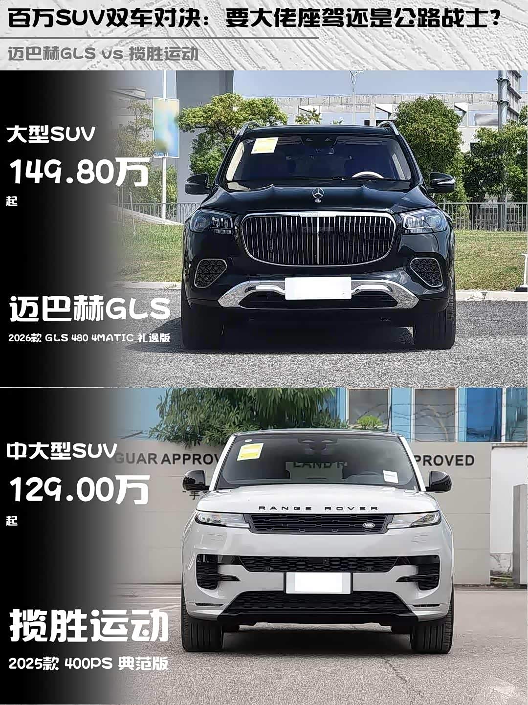 最近身边不少朋友在纠结百万级SUV到底选谁,今天就来聊聊 迈巴赫GLS(参数|询价) 2026款 GLS 480 4MATIC 礼逸版和揽胜运动 2025款 400PS 典范版这两台顶流选手,实测对比帮你避坑!🔥