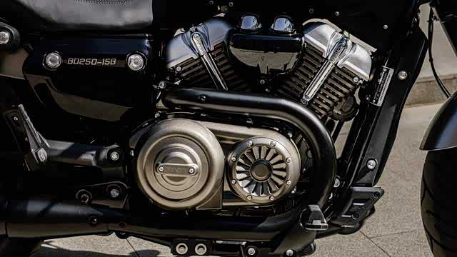 在动力上,该车所搭载的是V型双缸水冷电喷引擎,它实际排量249cc,最大功率19KW,最大扭矩25N·m,在5500转时即可释放最大扭矩,因而低扭会比较不错,并配套有皮带传动系统,所以换挡丝滑的同时传动过程也会静谧无声。