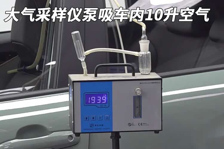 测试方法:将测试车辆在自然环境中,打开车门车窗进行完全通风;随后,将一根硅胶软管固定在司机头枕附近,模拟人呼吸位置;关闭车门车窗,将车辆停在恒温23±1℃的环境中密封静置16小时;使用采样仪从软管泵吸出10升车内空气,与酚试剂反应;将显色剂滴入酚试剂中,静置15分钟;使用醛正甲醛检测仪将显色后的样本进行检测,得出结果。