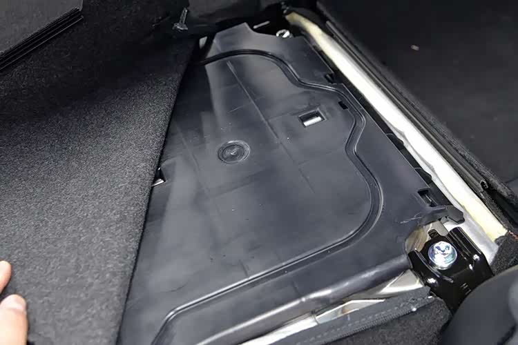 后排座椅靠背没有钢板,只有一块黑色塑料板!