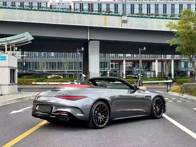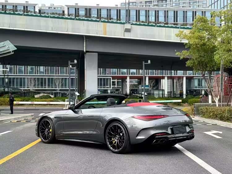 25年奔驰AMG SL63,月光石灰外观/黑色内饰,配置:SC组件,前排座椅通风,平视显示系统,碳纤维饰件,熏黑轮毂,夜色组件,红色顶篷等配置