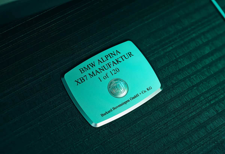 具体来看,标志性的双肾型进气格栅、尺寸达到23英寸的经典款式锻造轮圈,以及车尾的排气尾管,均被进行了深邃的黑色处理。车辆前部包围的设计在常规XB7的基础上进一步强化,线条更具张力,明确服务于运动姿态的塑造。当然,专属标识不可或缺,前包围上清晰可见的ALPINA徽标彰显了其特殊身份。车身侧面的B柱上,还装饰有激光蚀刻工艺制成的“MANUFAKTUR”字样,而车尾部分同样布置了ALPINA的专属标识,确保了从各个角度都能轻易辨识其限量版的独特地位。