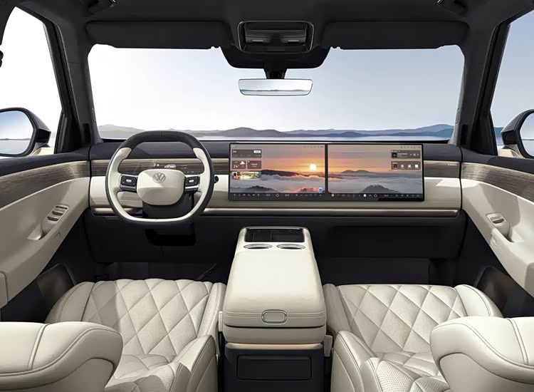 较为可惜的是,目前上汽大众ID.ERA 9X的内饰实拍依然尚未正式曝光;但从先前的官图来看,它的车内布局结构显得比较沉稳且简约。不过,凭借着包含中控屏与副驾驶娱乐屏的15.6英寸联屏设计以及别具一格的仪表盘投影,却能为其车内注入符合时代审美的科技氛围,且不会让其车内布局显得老气。此外,依照其车头的高塔激光雷达来看,预计其智能辅助驾驶系统也会是比较高阶的程度。