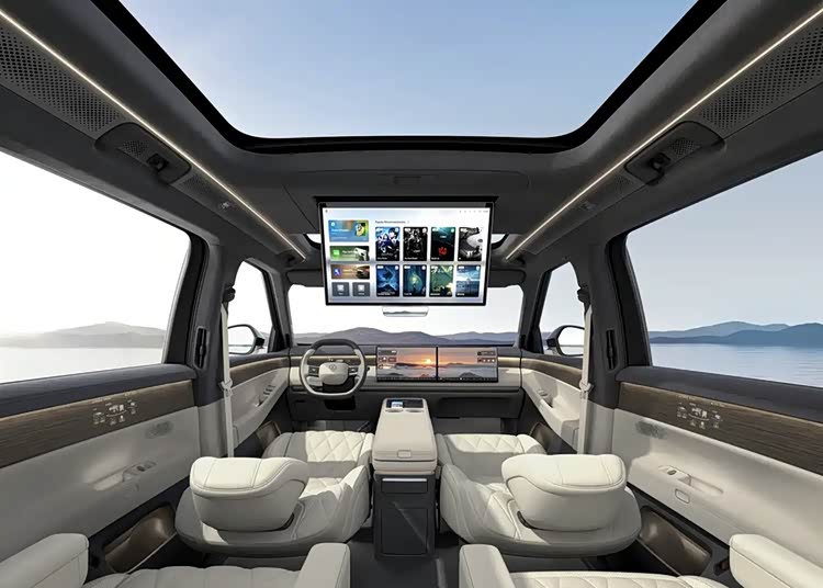乘用性表现方面,毕竟有着5207/1997/1810mm的车身三围以及3070mm的轴距,这使其车内空间自然不会显得局促。而包含第二排双独立座椅的6座布局,结合21.4英寸后排吸顶娱乐屏等配置,预计其车内并不欠缺高端化乘用舒适性。