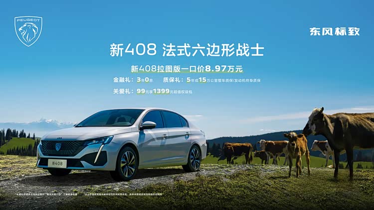 为让广大消费者尽享购车实惠,东风标致新408特别推出多重专属购车政策,涵盖多重礼遇与贴心方案:金融方面可享3 年 0 息优惠,轻松购车无压力;质保方面提供5 年或 15 万公里整车质保,更有发动机终身质保,用车安心无忧;同时可享99 元购价值 1399 元超值权益包关爱好礼,全方位守护用户的出行生活。多重福利加持,更有新 408 拉图版惊喜来袭,一口价仅 8.97 万元。