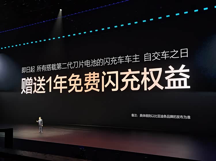 为了让更多用户享受到闪充技术的红利,比亚迪还推出重磅闪充权益:所有搭载第二代刀片电池的闪充车车主,自交车之日起可在全国闪充站享受 1 年免费闪充权益,且免费期结束后,充电费用将与行业保持一致,不额外收费,让闪充体验更畅快。