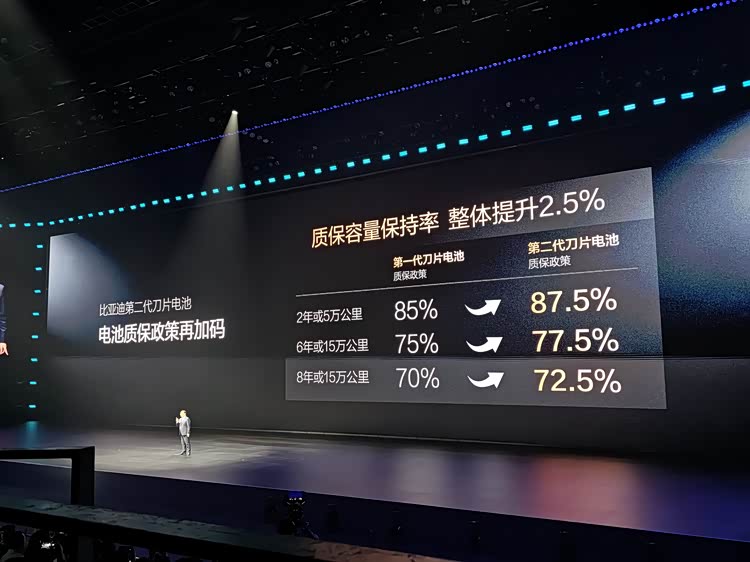 为了让闪充体验兼具高效与安心,比亚迪为第二代刀片电池打造了 “锂离子高速通道” 和 “全温域智能热管理系统”,实现了更低的产热与更高效、均匀的散热,让闪充对电池寿命几乎无影响。在此基础上,比亚迪更是加码电池质保政策,将第二代刀片电池质保的 “容量保持率” 整体提升 2.5%,电芯依旧享受 “终身保修”,用硬核保障打消用户的后顾之忧。