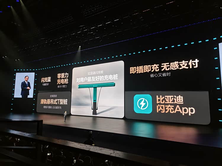 发布会上,比亚迪宣布计划在年底前建成20000座闪充站,让新能源汽车正式迈入闪充时代,不再有续航焦虑。
