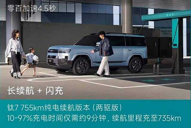 在插混版通过单月超3.4万台销量,创造了属于硬派新能源SUV的细分市场纪录后,方程豹打算乘胜追击,为钛7推出纯电版以扩大市场份额。
