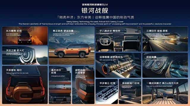 作为吉利在硬派SUV市场的第一台“方盒子”,吉利银河战舰早在去年就已经展示了原型车。只是不过,它打出的旗号与咱们在深蓝G318、方程豹豹5等车型上的差不多,就是“科技硬派”。不过,在越野这件事上,吉利这回还是挺认真的。