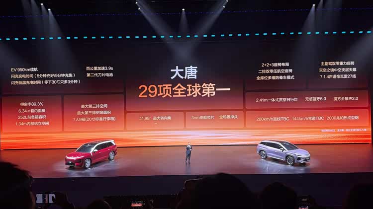 而且大唐搭载第二代刀片电池,支持二代闪充技术。喵哥当时在现场,看到大唐充电5分钟可补充400公里续航,电量从10%充至97%仅需约9分钟,即使在零下30摄氏度的极寒环境下,充电时间也仅比常温多3分钟,所以真的没有续航焦虑了。