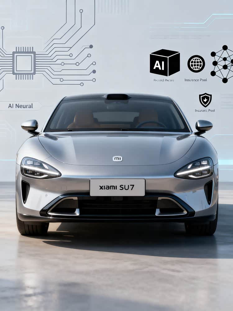 配图生成规则:生成 小米SU7(参数|询价)官方设计图、事故责任矩阵表图表、智能驾驶技术投入数据柱状图。