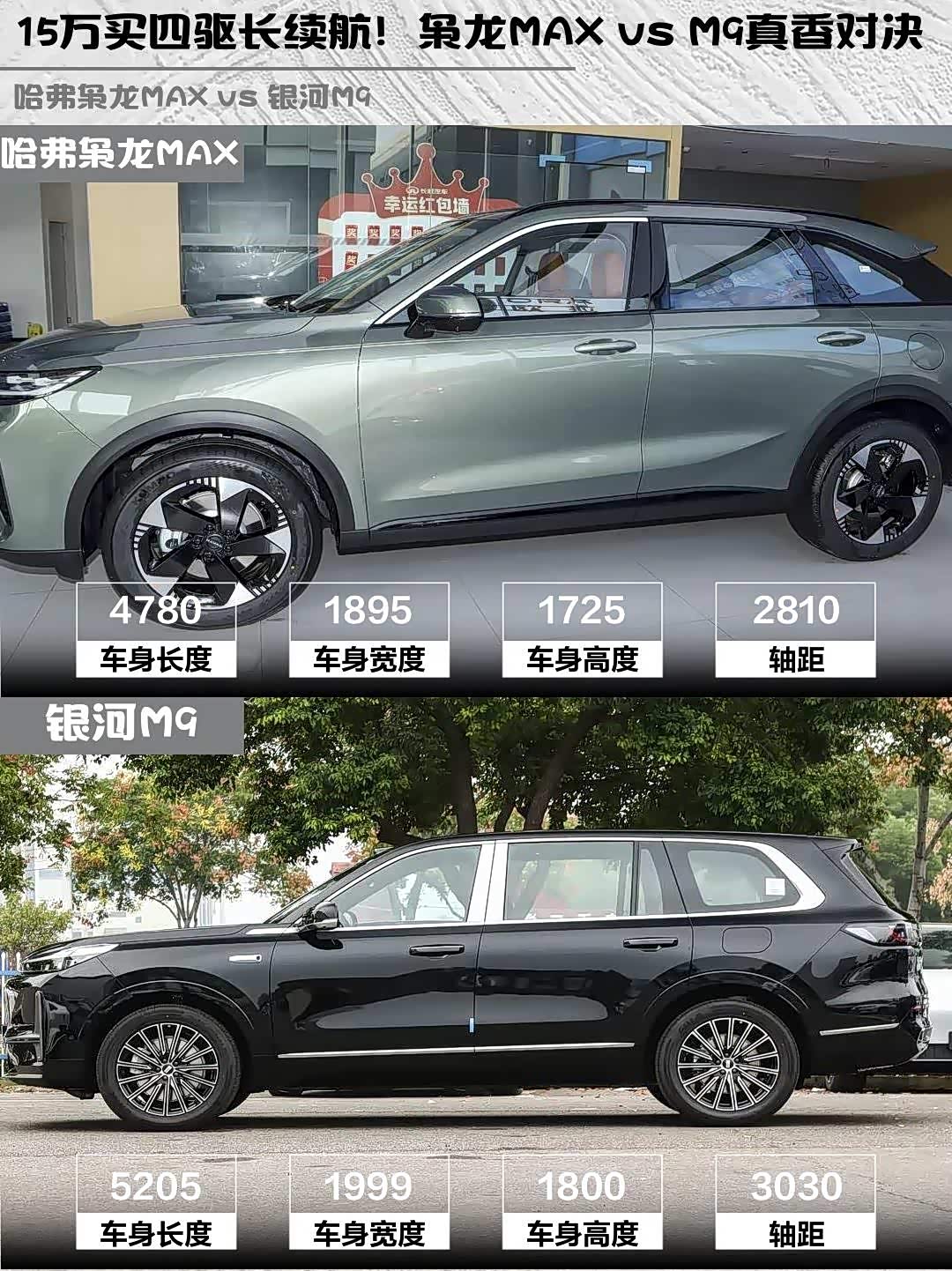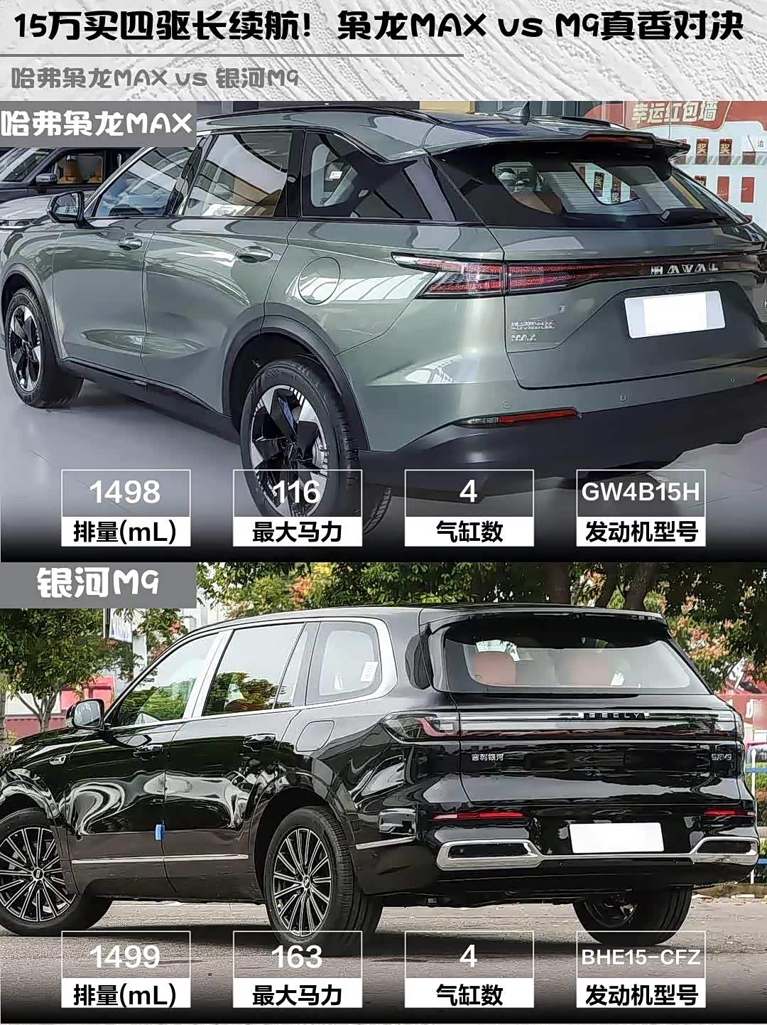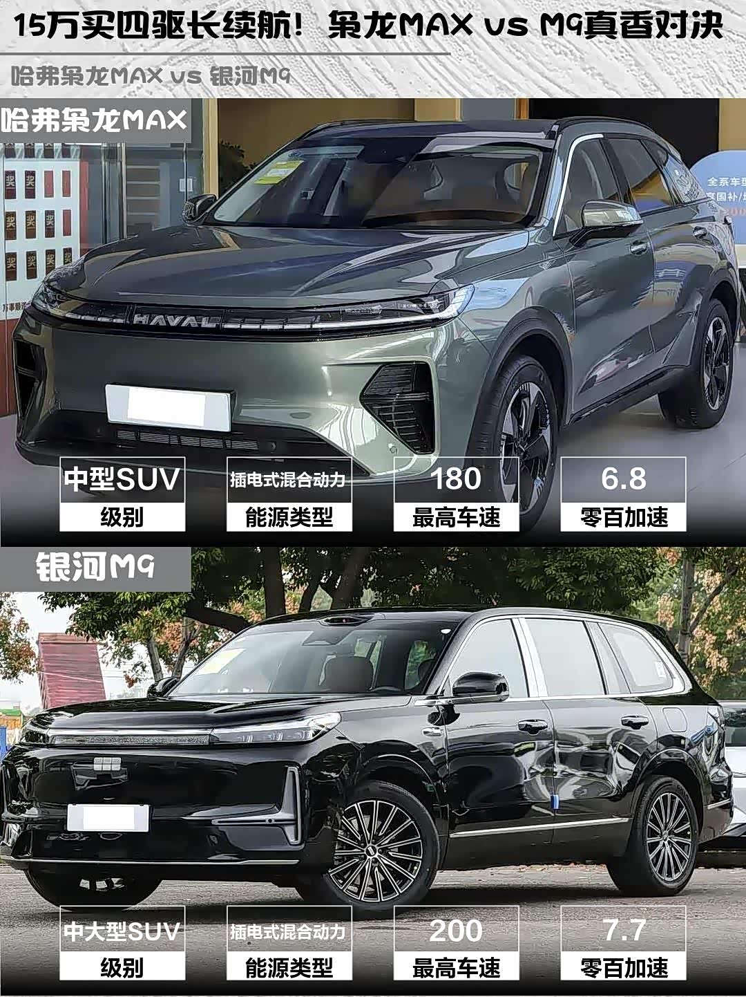 最近在选插混SUV的朋友看过来!🚗 今天深度对比两款热门车型—— 哈弗枭龙MAX(参数|询价) 2025款 Hi4 165 Plus 长续航版和银河M9 2025款 100km 两驱启航版,帮你找到更适合自己的那一款!💡