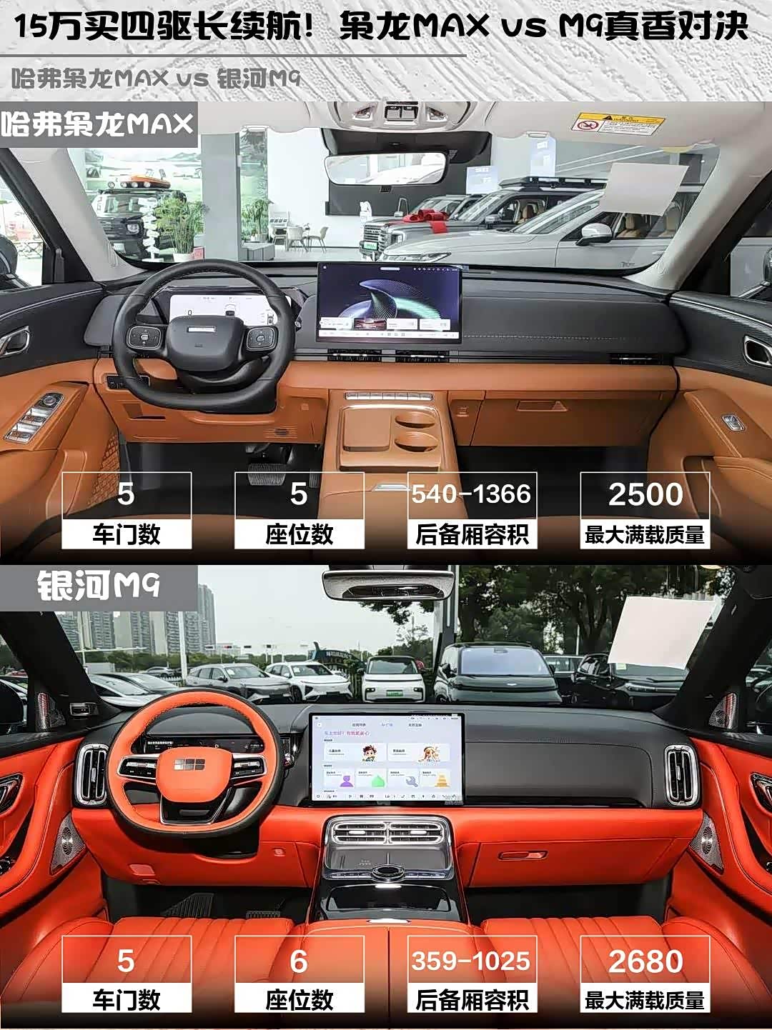 总结:喜欢自驾游/北方用户闭眼入枭龙MAX,四驱和长续航是王道;二胎家庭/商务需求多选M9,6座和舒适配置更贴心。你会pick哪款?评论区聊聊~