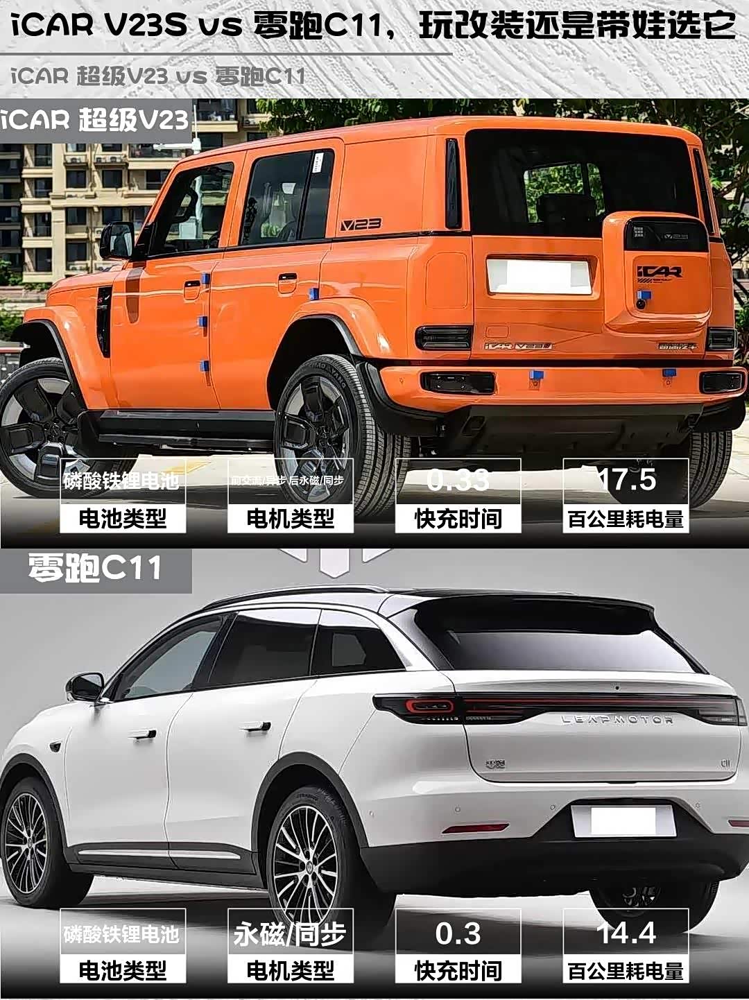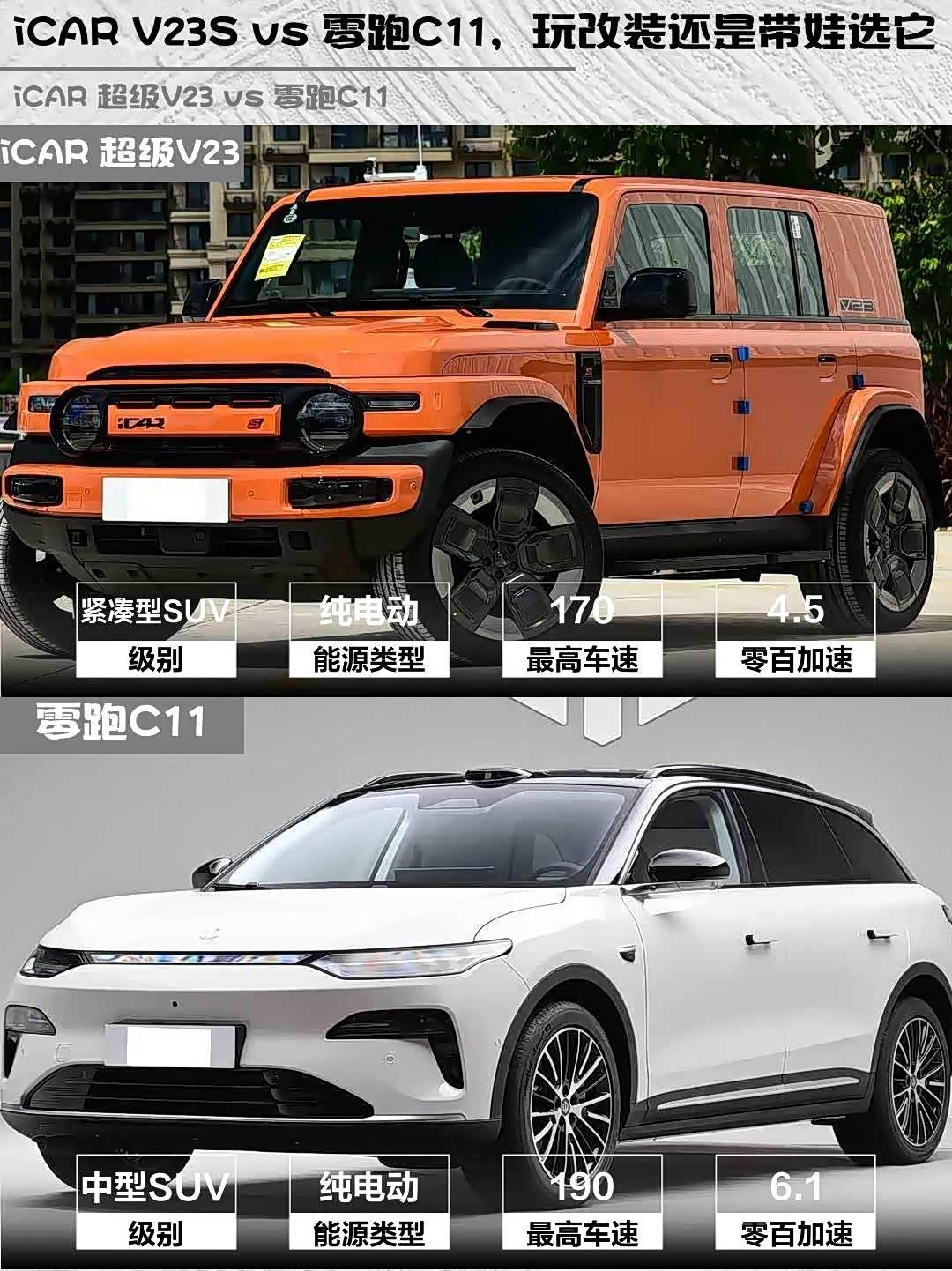 总结来说,iCAR V23S适合追求个性改装和越野范的玩家,零跑C11则是智能家用的全能选手。我个人更爱V23S的驾驶乐趣,但家里有娃的话可能还是会选C11的大空间。你们会pick哪台?