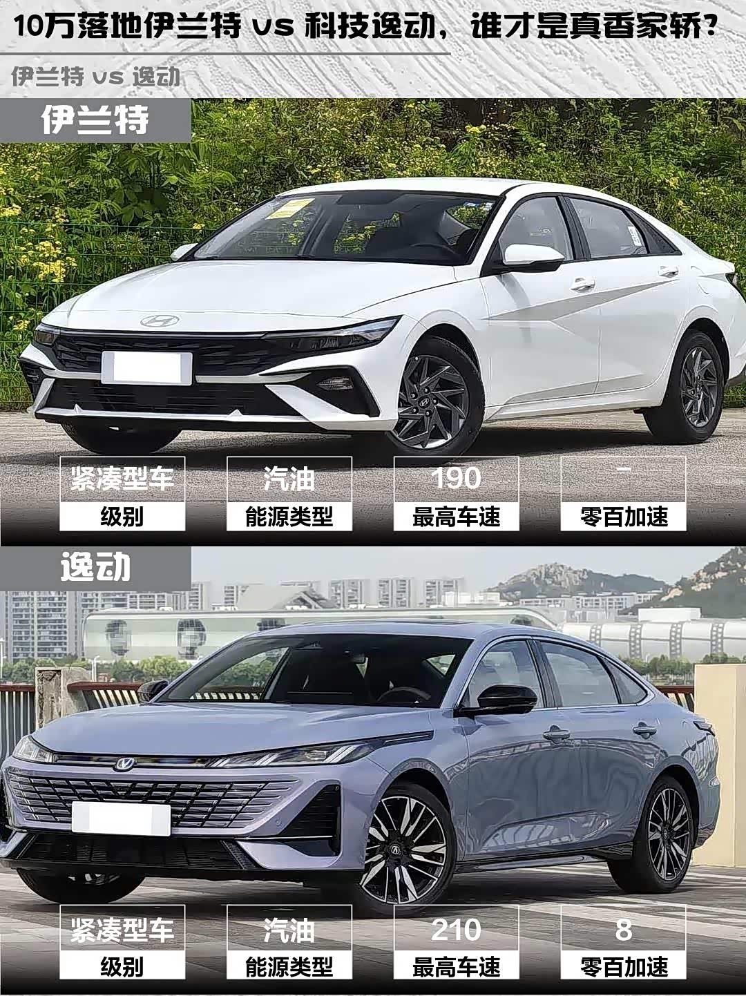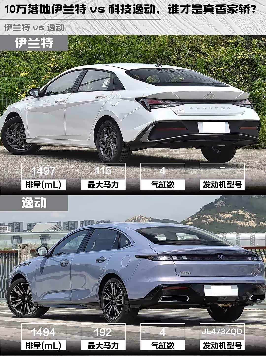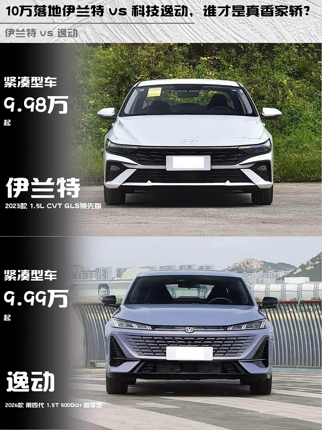 最近在10万级家轿里纠结了好久,最终锁定 伊兰特(参数|询价)2023款1.5L CVT GLS领先版和逸动2026款第四代1.5T 500Bar智享型这两款热门选手。深度对比后发现了不少有意思的差异点,分享给正在选车的你!✨