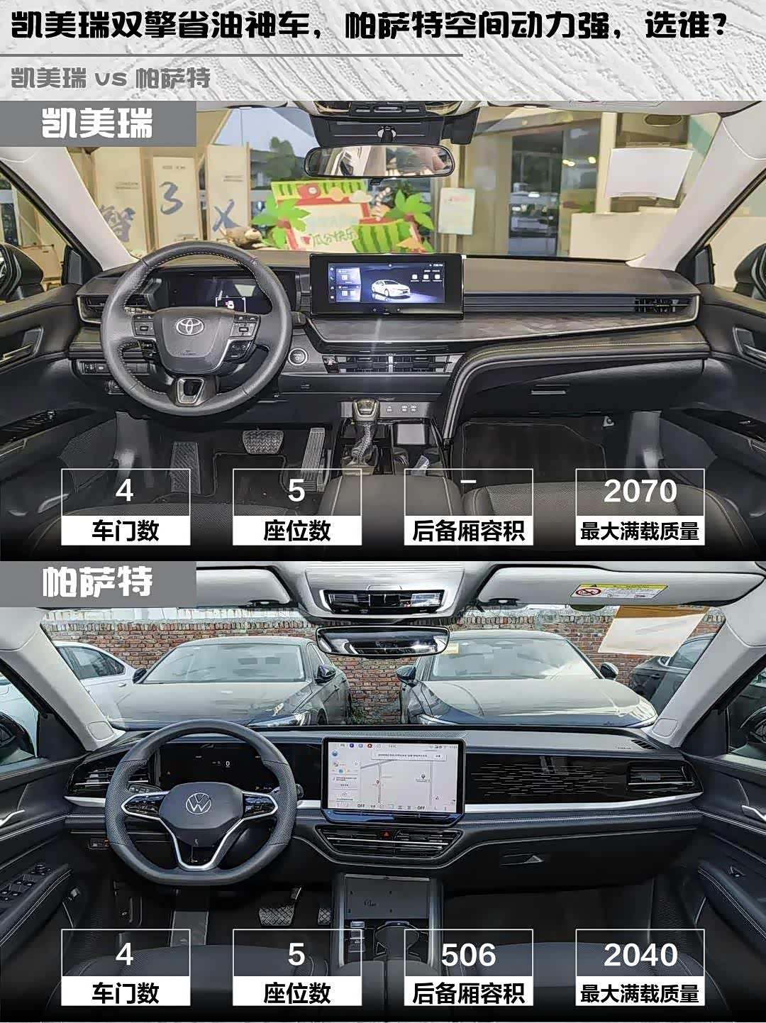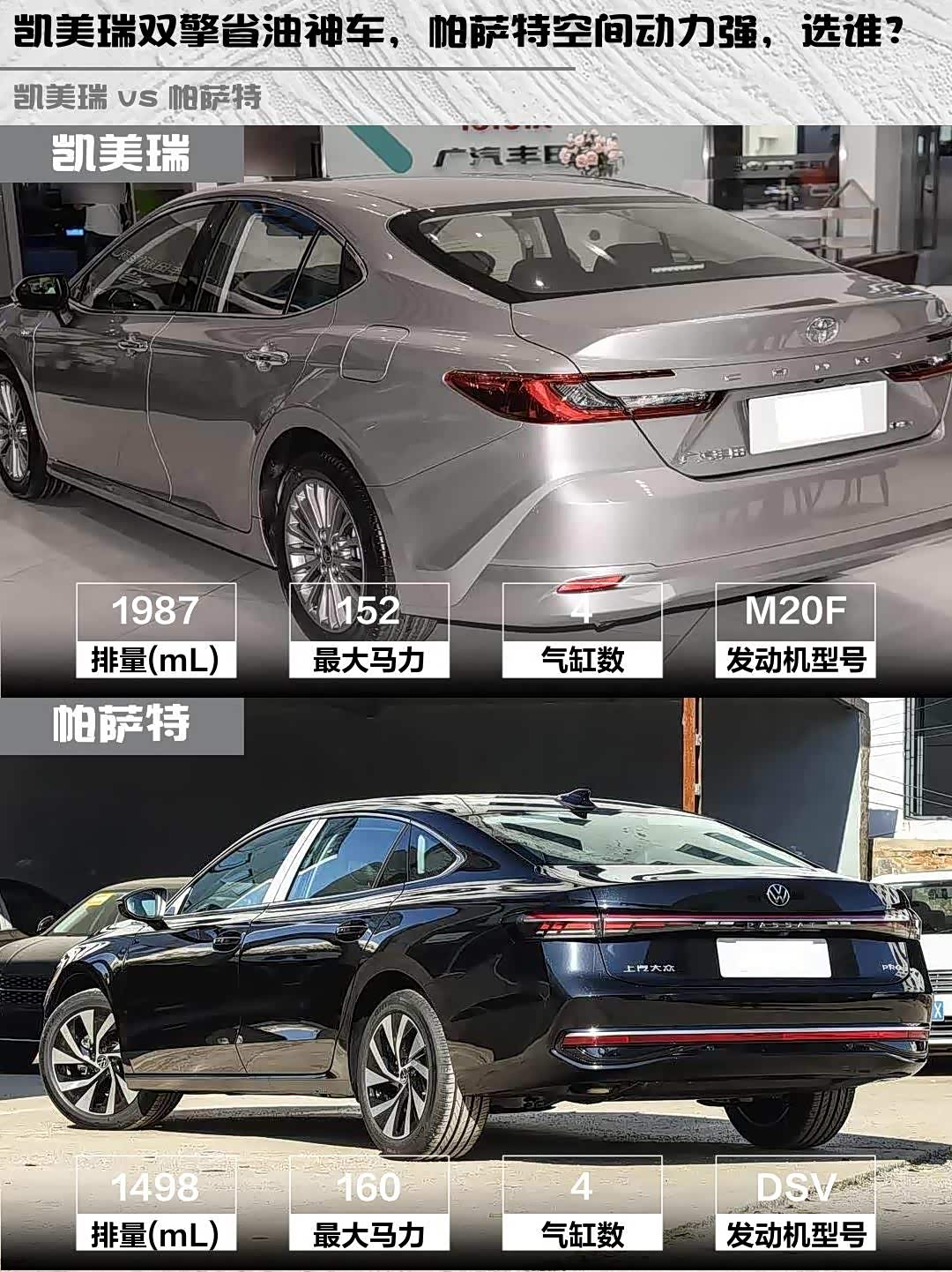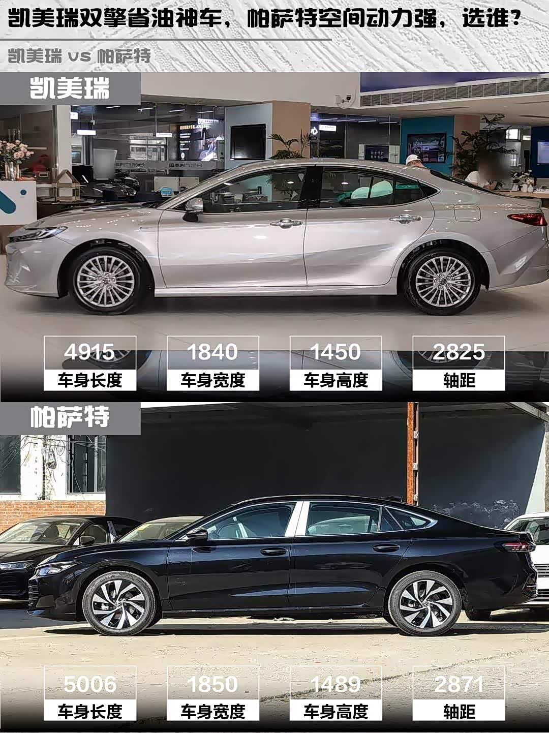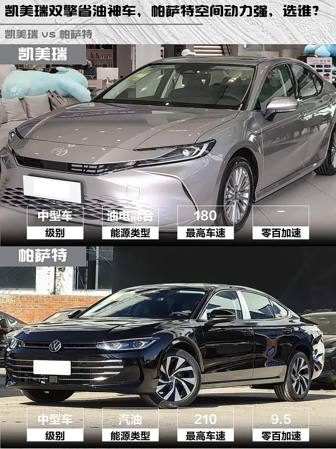 开下来感觉:要省心省钱选凯美瑞双擎,混动系统平顺得像电车;经常跑高速或商务需求就选帕萨特,德系底盘稳如老狗,星空前脸现在年轻人也爱。两台车销量都月均2万+,闭眼入都不亏!