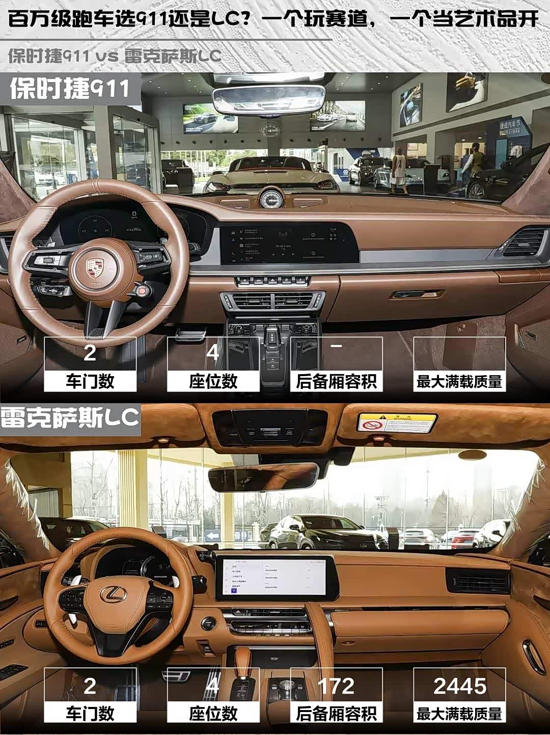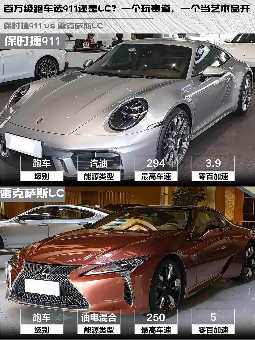 个人觉得,如果你追求极致驾驶乐趣和赛道日谈资,保时捷911 Carrera 3.0T就是答案;要是更看重日常舒适性和独特设计美学,雷克萨斯LC 500h运动版会更适合。你们会怎么选?评论区见~